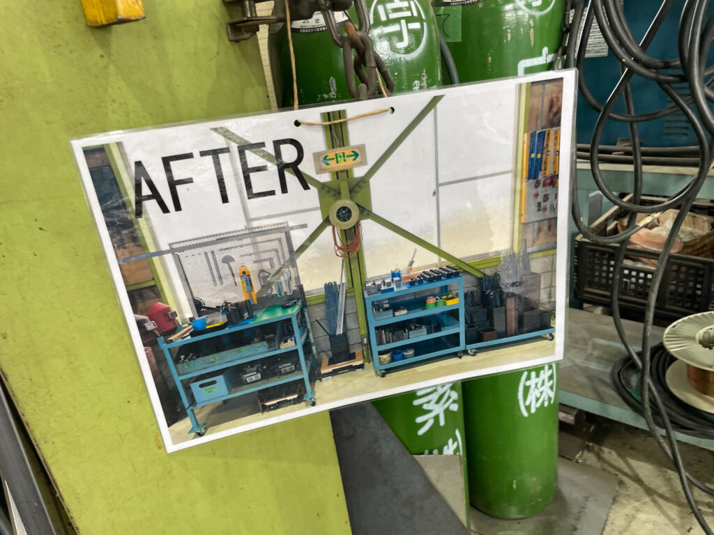 私たちの会社では、5Sを実施した後の状態の写真をラミネートで該当箇所に設置しています。