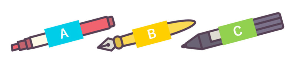 例:青い箱には赤いペンを入れる