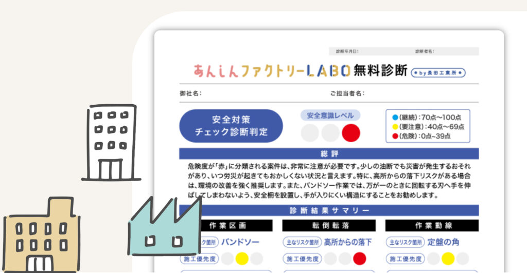 危険予知・改善提案・改善効果が一目で理解できる診断結果レポートをご提供
